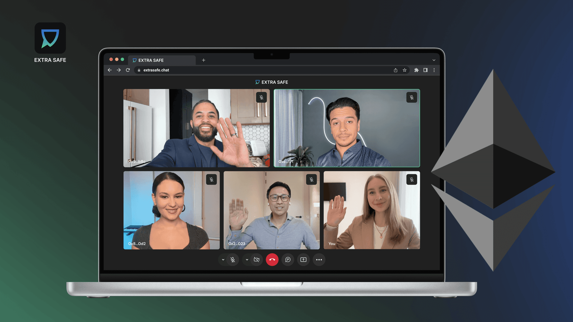 When you start a meeting from the browser, EXTRA SAFE creates a temporary Ethereum-style cryptographic account for the session. This account is used to set up encrypted voice, video, screen sharing, and in-meeting chat.